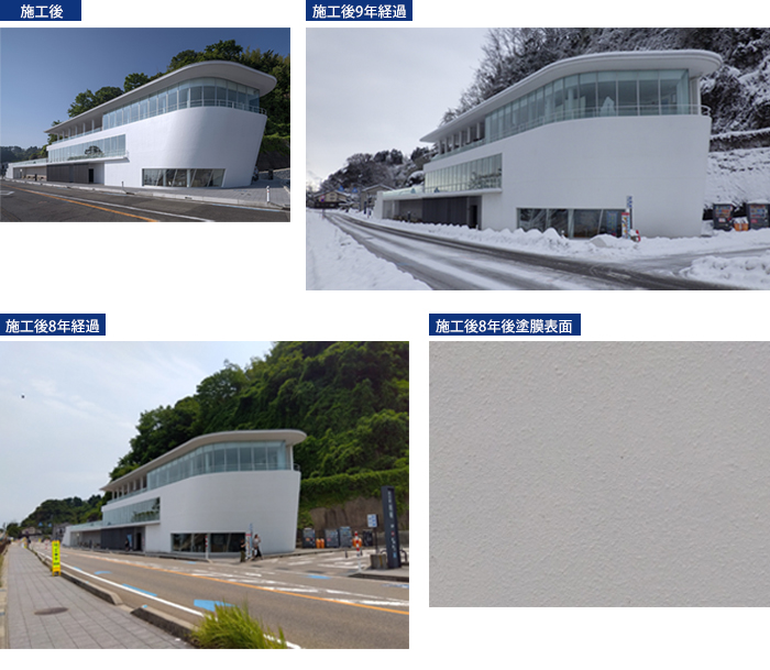 観光名所にある海岸沿いの道の駅へ、防水及び塩害対策の観点から、新築時にアロンウオールST工法の施工が採用された。